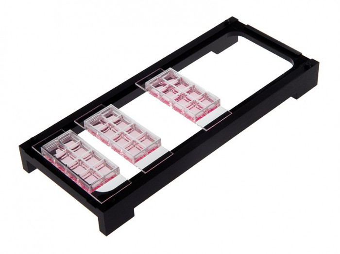 尤其我們做流體剪切力實(shí)驗(yàn)時(shí),比如在超凈臺(tái)上處理細(xì)胞和細(xì)胞比較多需要串連幾個(gè)載玻片時(shí),非常的適用,有了µ-Slides支架不僅方便載玻片的擺放,也節(jié)省空間。